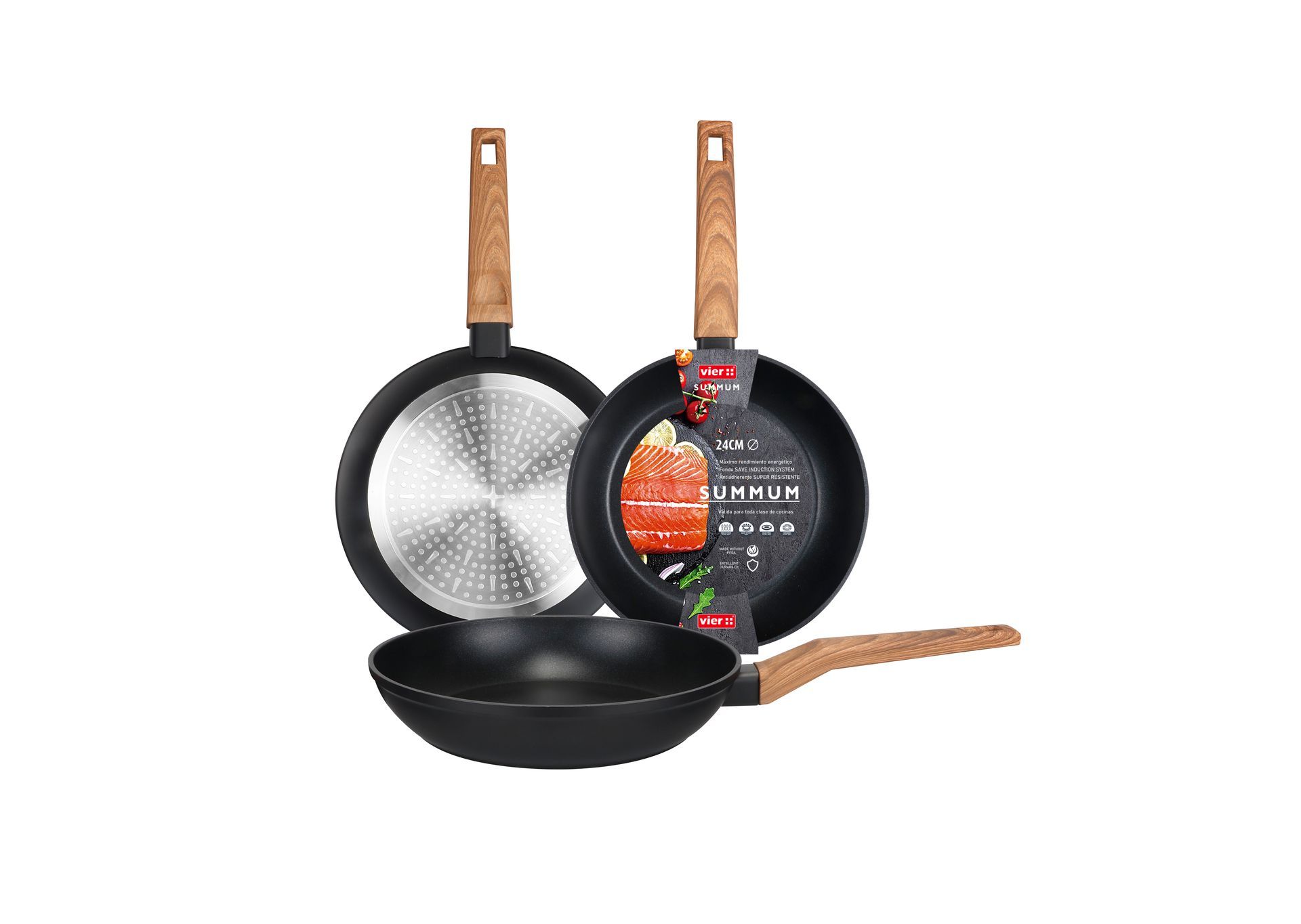 • Sartén Forjada en aluminio antiadherente, Mango Soft (suave) de silicona estampado madera