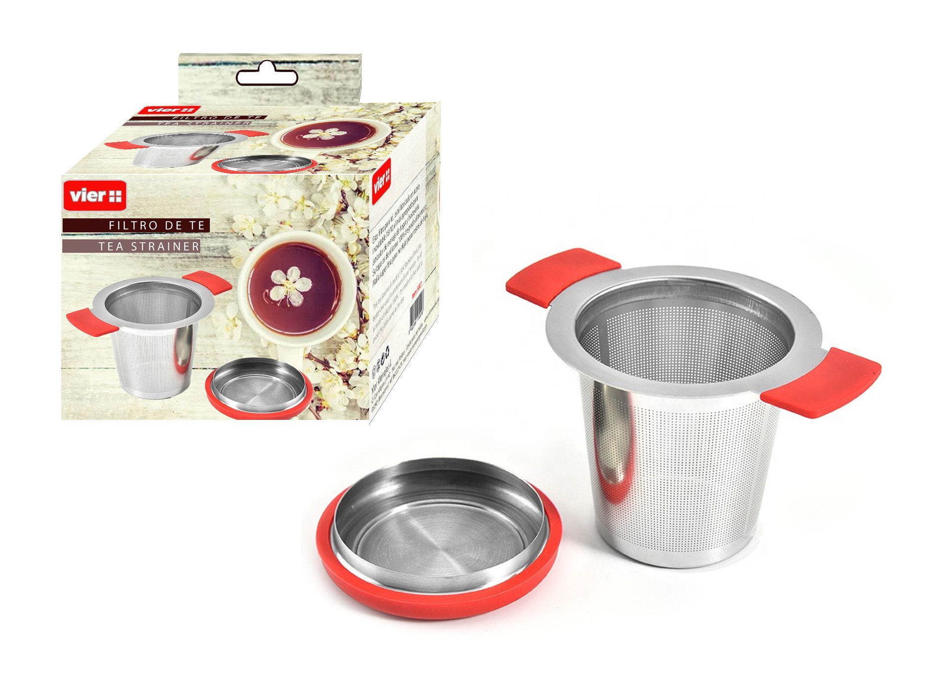 • Filtro de malla fina para té en acero Inoxidable 18/10 con tapa y asas de silicona