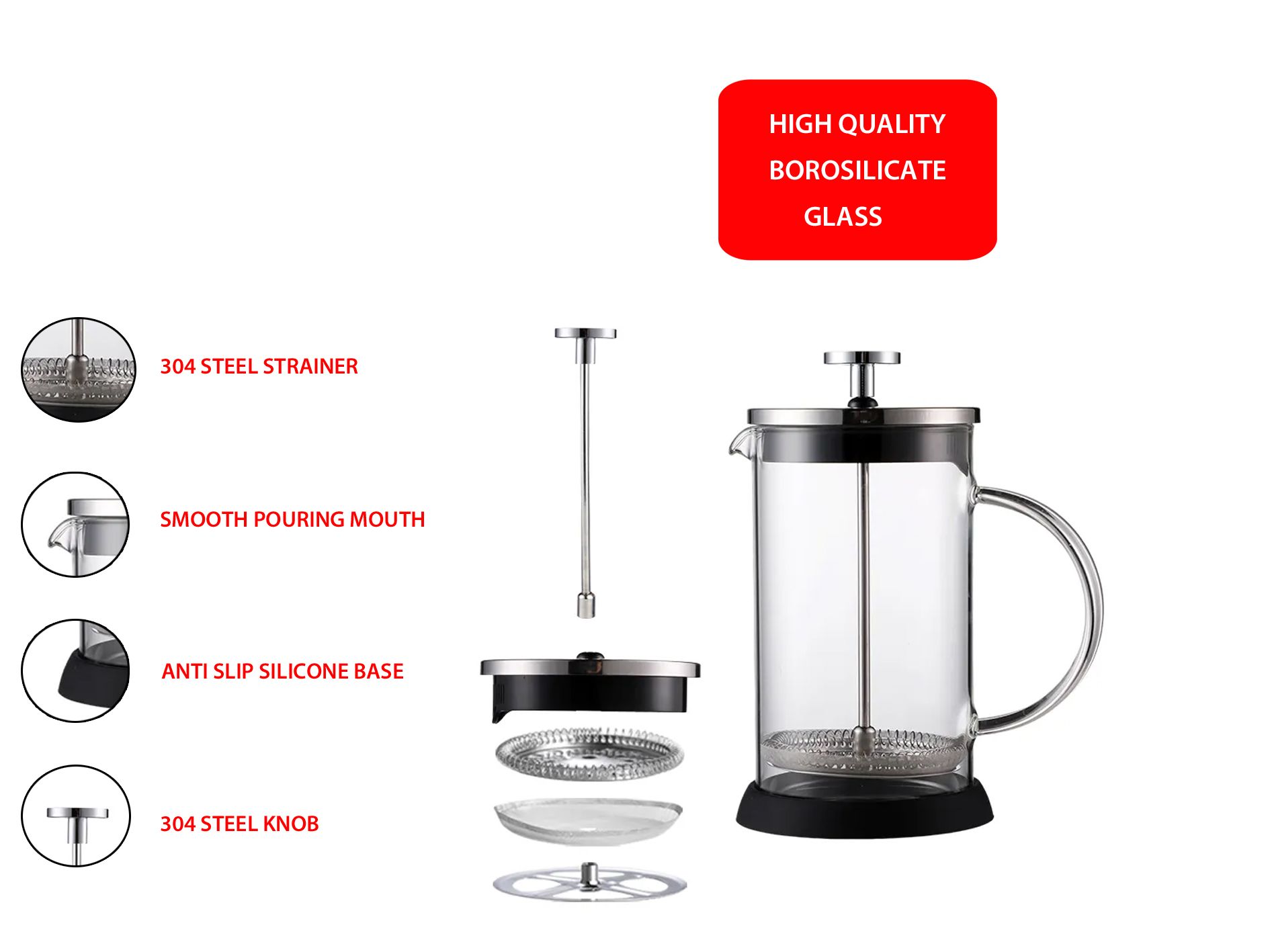 Tetera émbolo de borosilicato francesa
